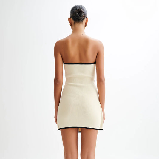Océane Vêtements - Simply Elegant Strapless Ivory Knit Mini Dress