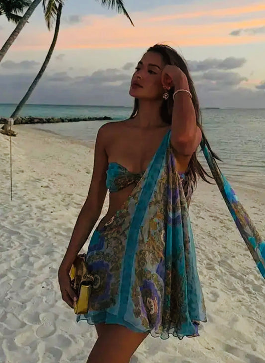 Océane Vêtements- Chiffon Mesh Flower Drape Mini Dress