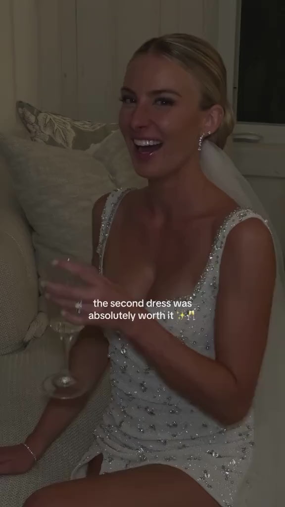 Step into your bridal moment with effortless elegance in the Diamond Muse Bridal Mini Dress — a modern fairytale designed for the confident, unforgettable bride.